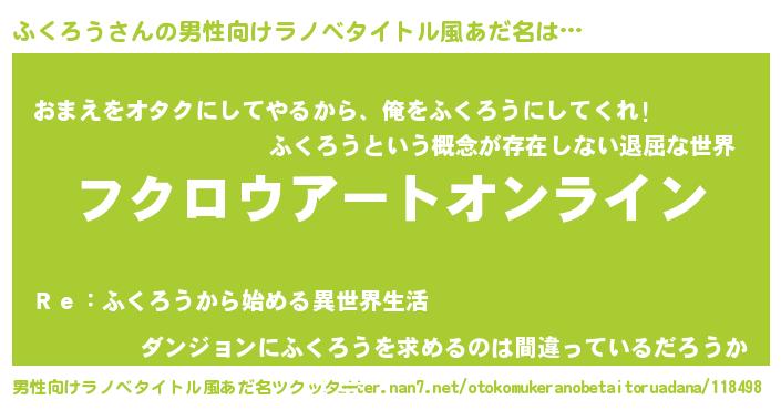| ヒーロー風カッコイイあだ名 | 『スーパーフクロウ』『暗黒騎士フク』 |