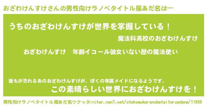 | 女子向けラノベタイトル風あだ名 | 『おざわけんすけの玉の輿計画!』 |