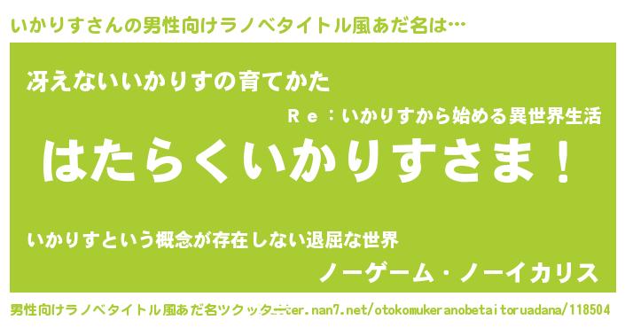 | ヘコむあだ名 | 『いかりす(爆)』『なまこ酢』 |