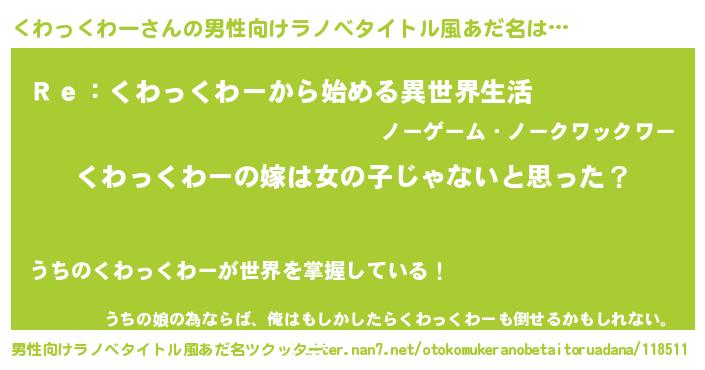 | 女子向けラノベタイトル風あだ名 | 『くわっくわー様がみてる』 |