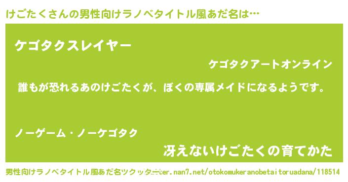 | ヒーロー風カッコイイあだ名 | 『ネオケゴタク』『スーパーケゴタク』 |