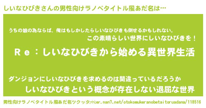 | 女子向けラノベタイトル風あだ名 | 『闇のしいなひびき』 |