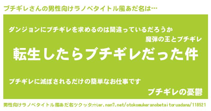 | 胡散臭い通販商品みたいなあだ名 | 『伝統あるサプリメント…その名も「ブチギレ」』 |