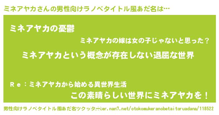 | 意味不明あだ名 | 『永久保存ミネアヤカ』『自称ミネアヤカ』 |