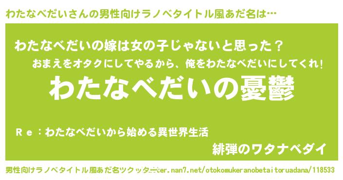 | 女子向けラノベタイトル風あだ名 | 『(仮)わたなべだいのやんごとなき事情』 |