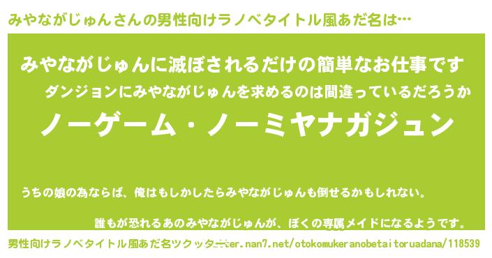 | 女子向けラノベタイトル風あだ名 | 『死神みやながじゅんの再婚』 |