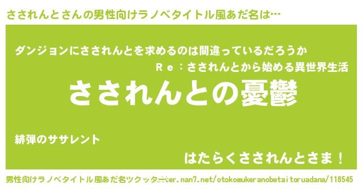 | 女子向けラノベタイトル風あだ名 | 『(仮)さされんとのやんごとなき事情』 |