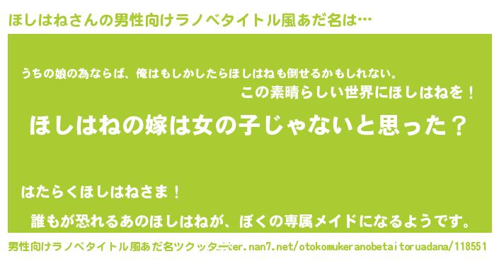| 女子向けラノベタイトル風あだ名 | 『ほしはね様がみてる』 |