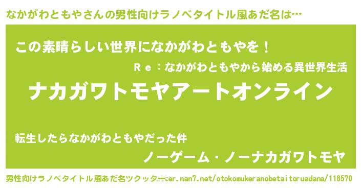 | 胡散臭い通販商品みたいなあだ名 | 『モテモテ間違いなし霊験あらたかなお札…その名も「なかがわともや」』 |