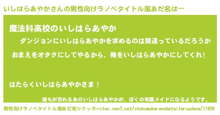 | ヘコむあだ名 | 『いしはらあやか(苦笑)』『いしっ子』 |