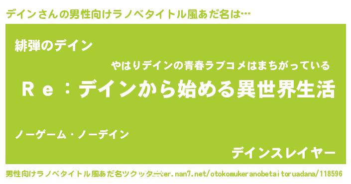 | ヒーロー風カッコイイあだ名 | 『究極戦士デイン』『ウルトラデインマン』 |