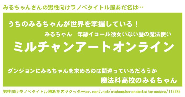 | 女子向けラノベタイトル風あだ名 | 『誰かこのみるちゃんを説明してください! ~契約から始まるウェディング~』 |
