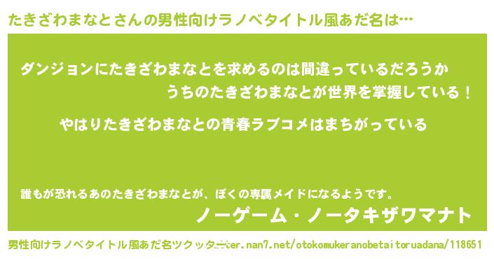 | ファンタジー風あだ名 | 『エターナルタキザワマナトー』 |