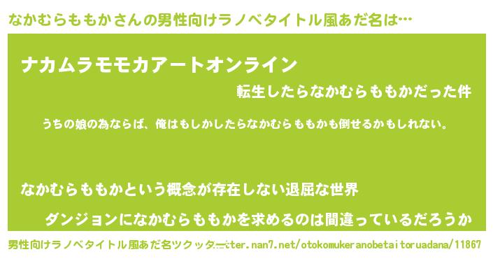 | 女子向けラノベタイトル風あだ名 | 『なかむらももかの婚約者』 |