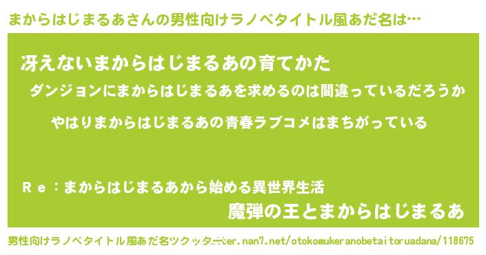| 女子向けラノベタイトル風あだ名 | 『まからはじまるあの雑貨屋さん』 |