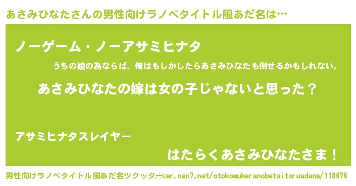 | 女子向けラノベタイトル風あだ名 | 『あさみひなたの卵を拾いまして』 |