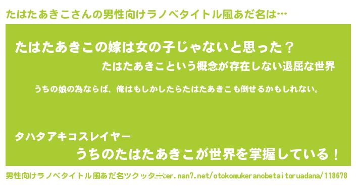 | 女子向けラノベタイトル風あだ名 | 『たはたあきこの婚約者』 |