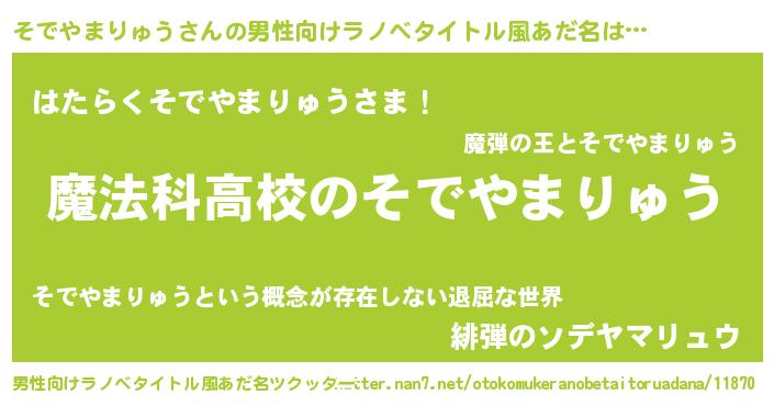 | ヒーロー風カッコイイあだ名 | 『サイバー戦士ソデヤマリュウ』 |