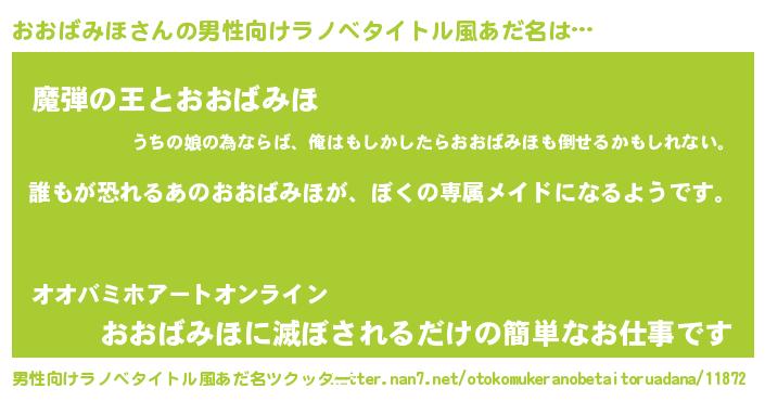 | 女子向けラノベタイトル風あだ名 | 『おおばみほの契約王妃』 |