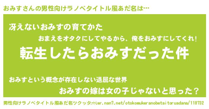 | 女子向けラノベタイトル風あだ名 | 『おみすの玉の輿計画!』『おみす恋絵巻』 |