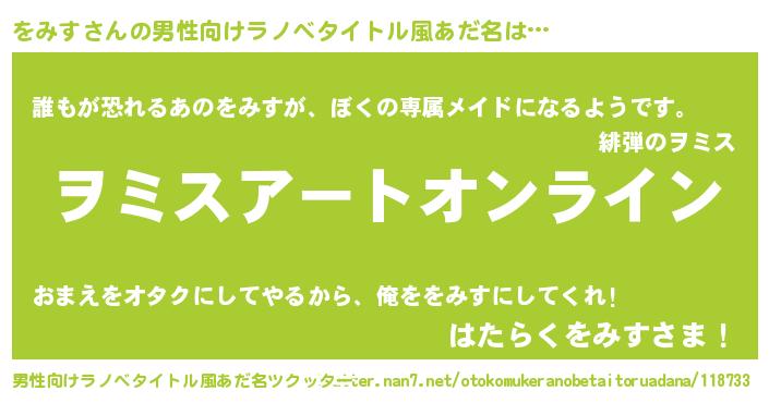 | 胡散臭い通販商品みたいなあだ名 | 『億万長者になれるブレスレット…その名も「をみす」』 |