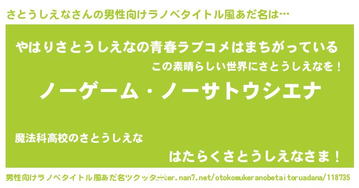 | 女子向けラノベタイトル風あだ名 | 『死神さとうしえなの再婚』 |