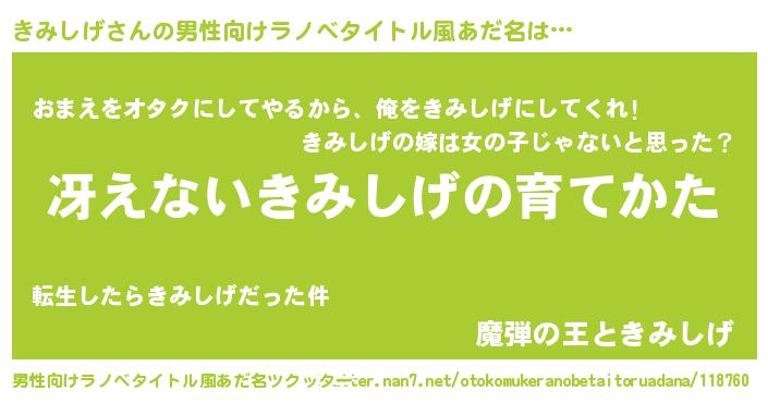 | ヒーロー風カッコイイあだ名 | 『慈愛の使者きみしげ』『仮面キミダー』 |