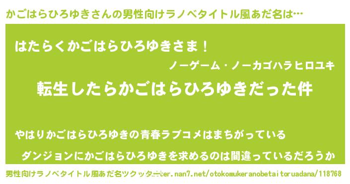 | 肩書あだ名 | 『かごはらひろゆき中佐』 |