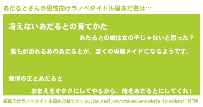 | 女子向けラノベタイトル風あだ名 | 『異世界でカフェあだるとを開店しました。』 |