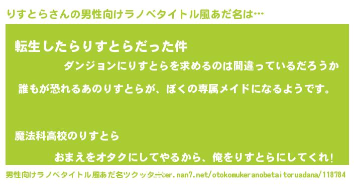 | ヘコむあだ名 | 『りすとら(笑)』『りすぷりん』 |