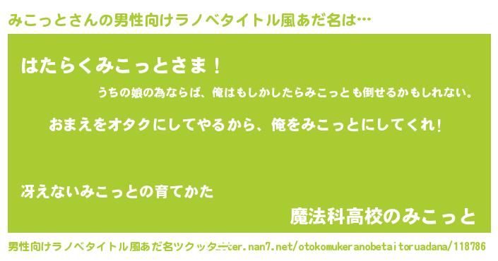 | 女子向けラノベタイトル風あだ名 | 『みこっと恋絵巻』『みこっとの婚約者』 |