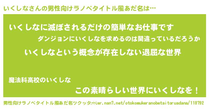 | ヘコむあだ名 | 『いくしな(小並感)』『いく太郎』 |