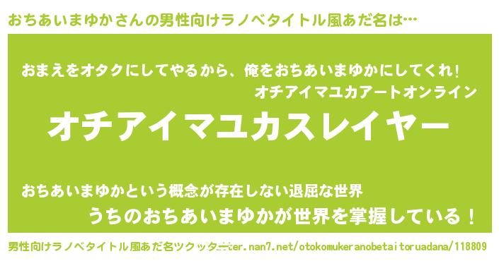 おちあいまゆかさんの男性向けラノベタイトル風あだ名をツクッター!