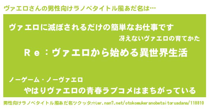 | 意味不明あだ名 | 『自称ヴァエロ』『ヴァエロフォーエバー』 |