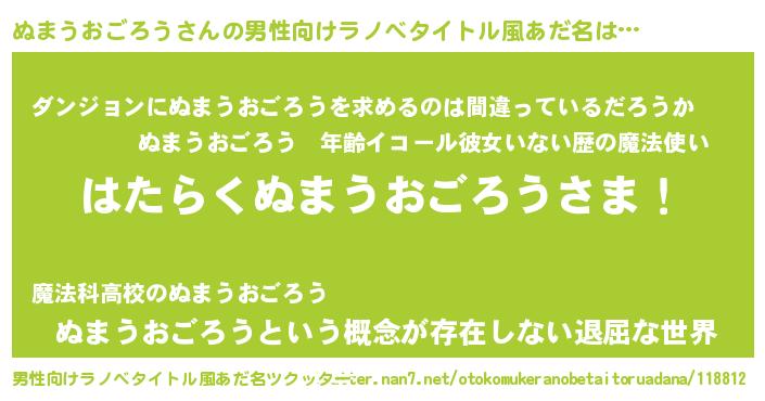 | 意味不明あだ名 | 『とにかく怪しいぬまうおごろう』 |