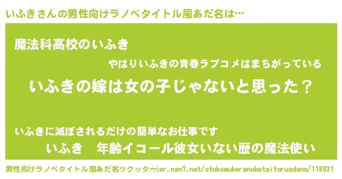 | 女子向けラノベタイトル風あだ名 | 『いふきの卵を拾いまして』 |