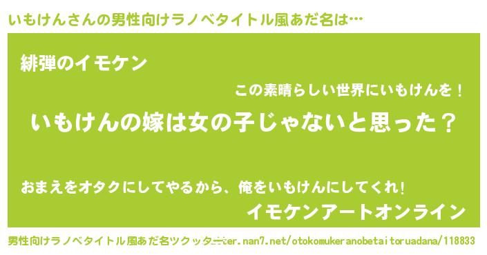 | 女子向けラノベタイトル風あだ名 | 『いもけん様がみてる』 |