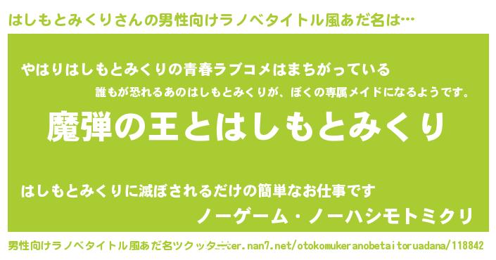 | 意味不明あだ名 | 『住所不定無職はしもとみくり(77歳)』 |