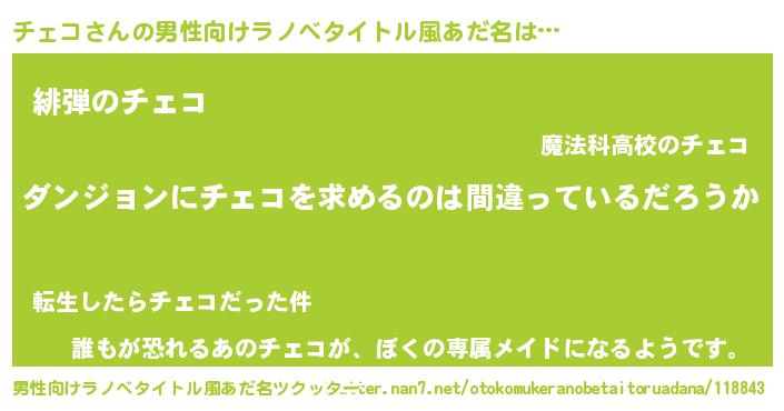| 女子向けラノベタイトル風あだ名 | 『チェコの卵を拾いまして』 |