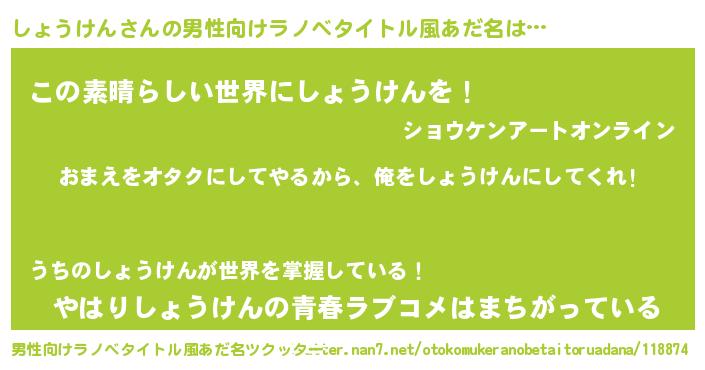 しょうけんさんの男性向けラノベタイトル風あだ名をツクッター!