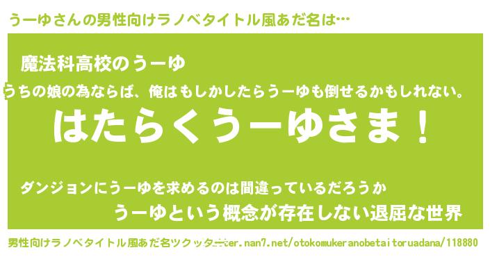 | 伝説のあだ名 | 『聞きしに勝る勇者うーゆ』 |