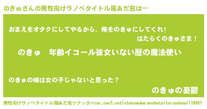 | 肩書あだ名 | 『のきゅ上級大将』『のきゅ教授』 |