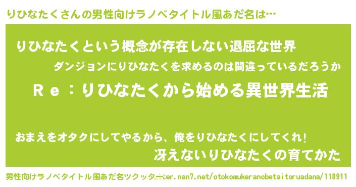 | ヒーロー風カッコイイあだ名 | 『最強戦士リヒナタク』『ネオリヒナタク』 |