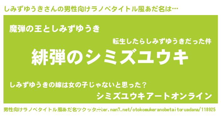 | 意味不明あだ名 | 『住所不定無職しみずゆうき(1歳)』 |