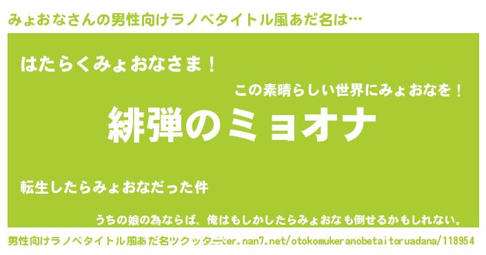 | 女子向けラノベタイトル風あだ名 | 『シンデレラみょおな家の靴箱館』 |