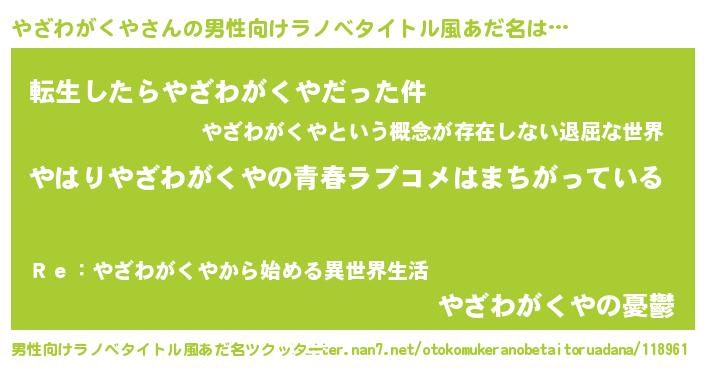 | 女子向けラノベタイトル風あだ名 | 『やざわがくやの雑貨屋さん』 |