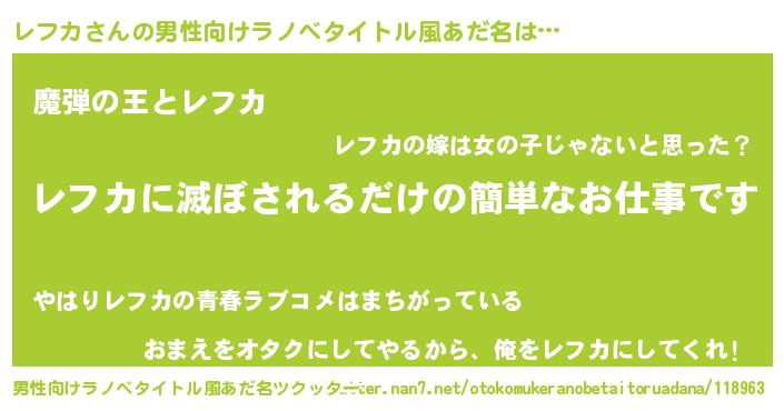 | 意味不明あだ名 | 『住所不定無職レフカ(8歳)』 |