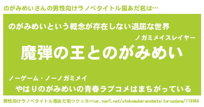 | ヒーロー風カッコイイあだ名 | 『仮面ノガダー』『ネオノガミメイ』 |