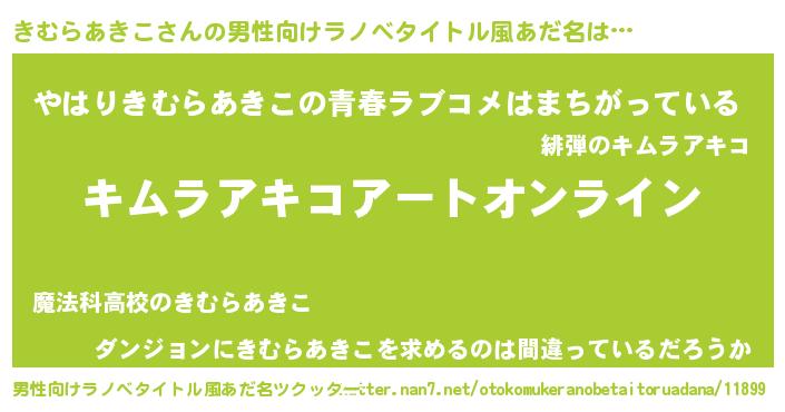 | 女子向けラノベタイトル風あだ名 | 『誰かこのきむらあきこを説明してください! ~契約から始まるウェディング~』 |