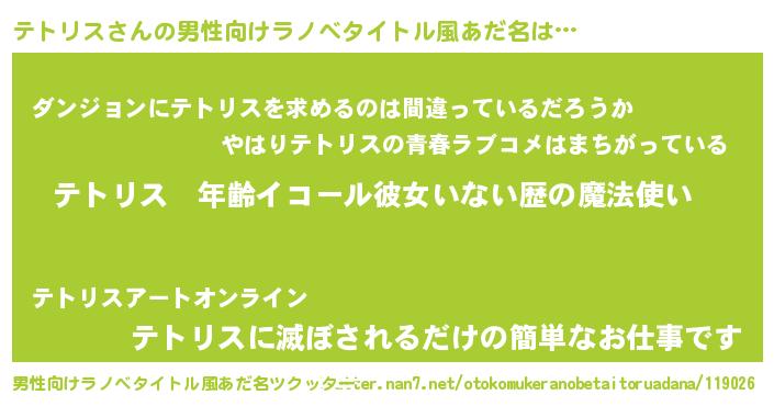 | 女子向けラノベタイトル風あだ名 | 『テトリスの玉の輿計画!』 |